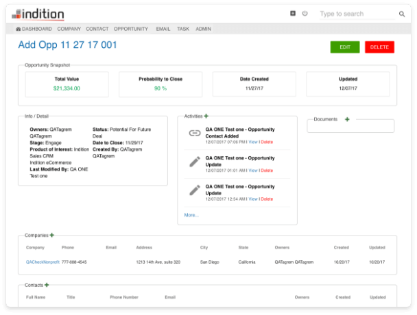 Whether you have already used the household variety of "CRMs" or if you're searching for the latest-and-greatest technology to grow your customer base, Indition CRM offers a suite of resources to kickoff, manage and engage your contact acquisition efforts. We offer best-in-class resources and flexibility, in addition to our tailored solutions, designed to fit every small, medium and enterprise business need.